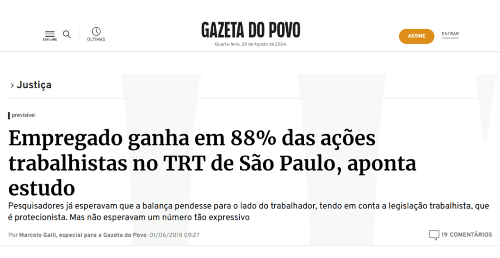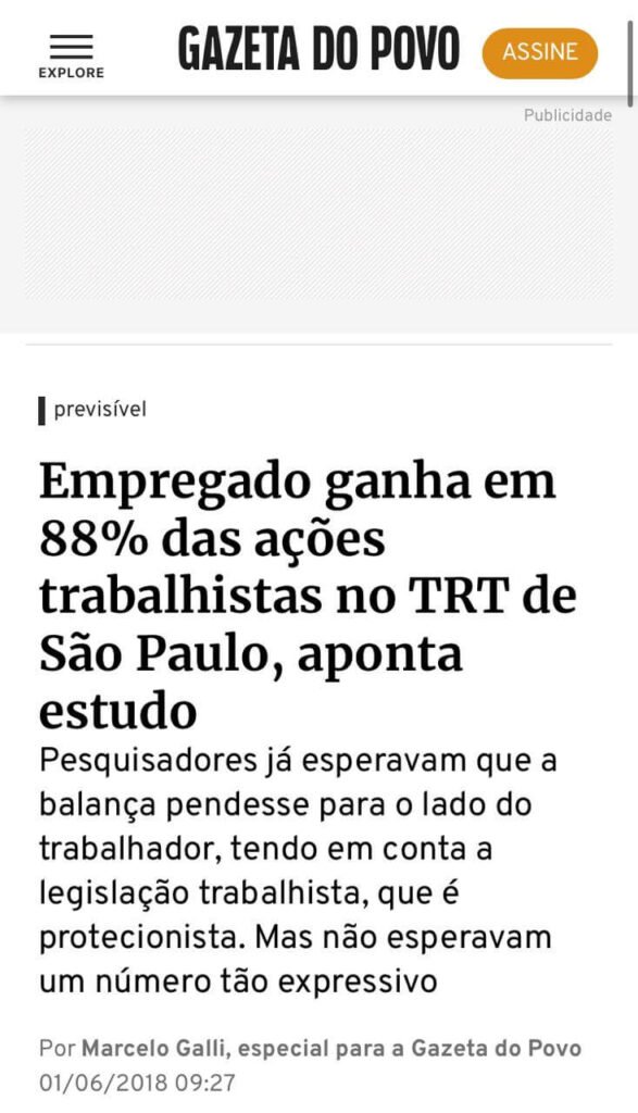 Acredite, no processo judicial trabalhista entre empresas x trabalhador, o trabalhador normalmente vence.